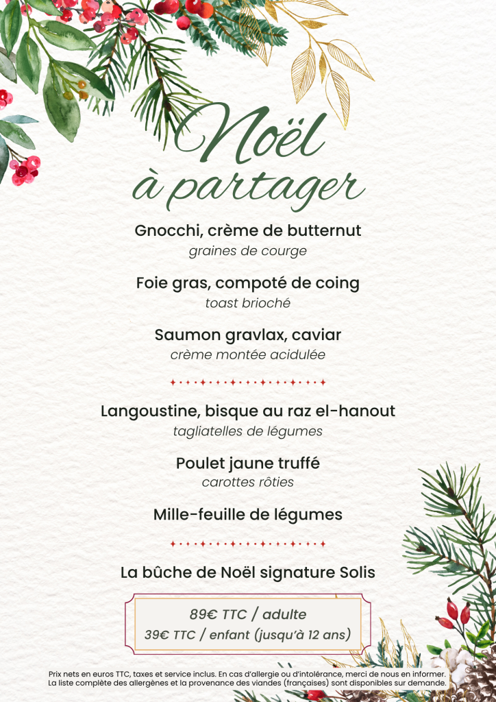 Réservez votre table dès aujourd’hui et laissez-vous emporter par la magie de Noël au Solis à Paris 17.