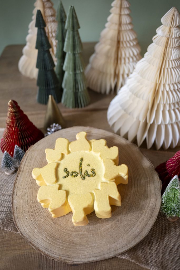 Pour terminer votre repas en beauté, laissez-vous séduire par la Bûche Signature du Solis. Conçue avec soin et passion, elle marie des textures délicatement moelleuses à des saveurs raffinées, avec une association festive de pistache, mousse à la rose et mandarine, pour un plaisir autant visuel que gustatif.